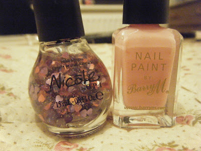 I saw it as the perfect time to try out my new Justin Bieber polish called Step To The Beat Of My Heart which is by Nicole by OPI. I didnt buy it just because it was by Justin Bieber mind, but because it is so girly and cute and very unique. I used Barry M's Strawberry Ice Cream as my basecoat (also really gorgeous just on its own, it looked so good I was debating whether or not to even put the hearts on top)...